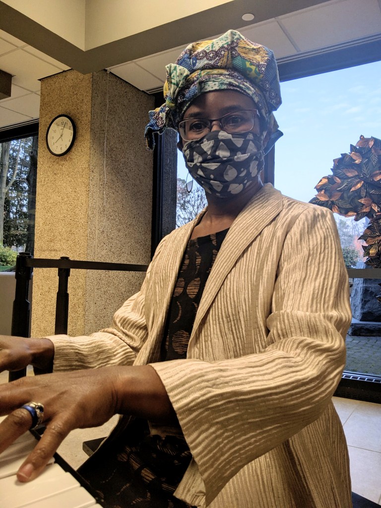 Since losing my full-time job this April, I have often felt like I had nothing to give to anyone beyond myself and my household. While reflecting during Thanksgiving weekend, I decided I needed to voluntarily do something for someone else and also realized I had spent very little time playing piano. I made a phone call to a hospital where I had found a chapel with an upright piano when I was a patient. I offered to play some Christmas music. The director asked to move the piano to the lobby (distanced from the seating area) and suggested I perform for the staff during a morning shift change.